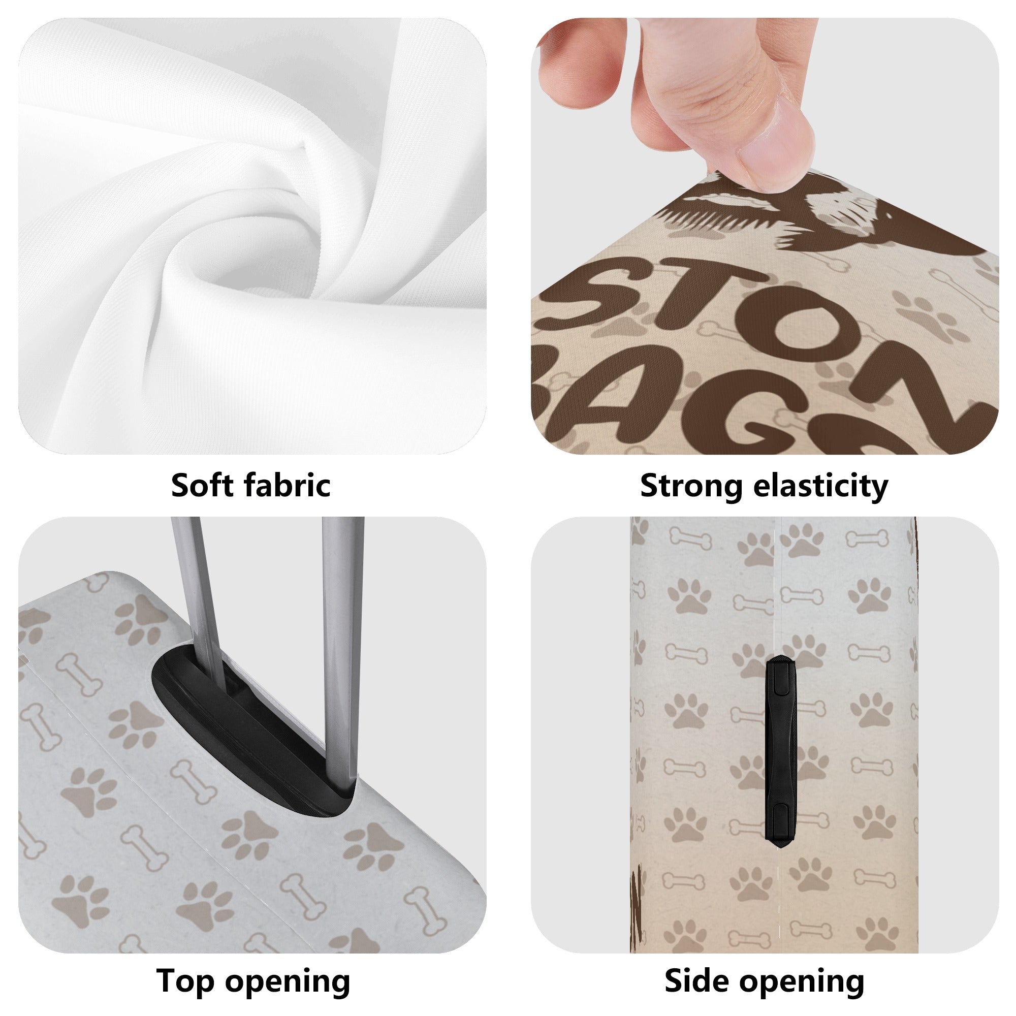 - The case cover comes in four sizes (S-XL) that correspond to different luggage box models. It has a unique opening on top for the telescopic handle and carry handle, and zippers on both sides for the side handles. This makes it easy to load and unload your luggage without removing the case cover.
