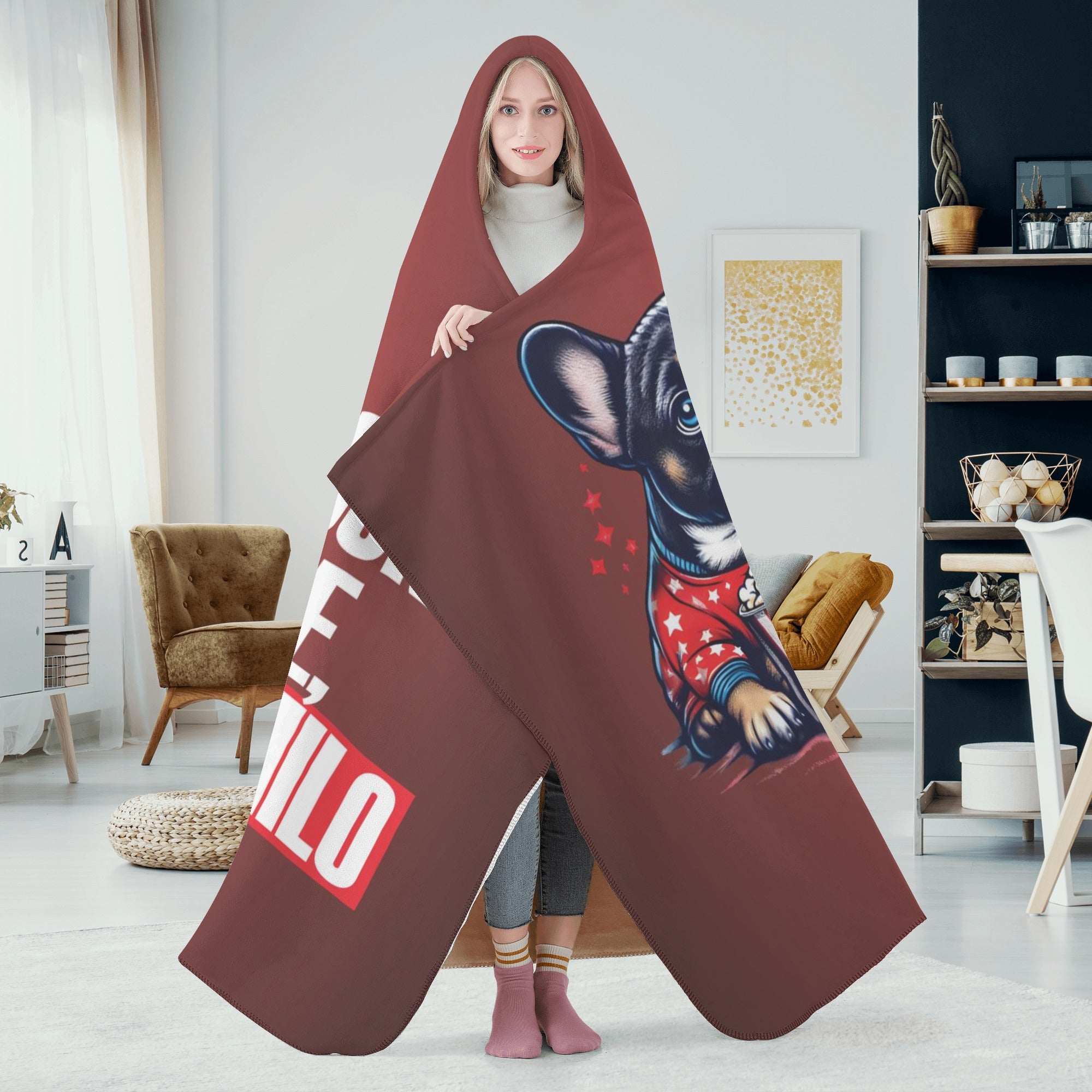 Calling all devoted Frenchie enthusiasts! If you're searching for a way to infuse your life with the unique charm of your four-legged friend, look no further. Introducing our Custom Hooded Blanket for Frenchie Lovers – a delightful and whimsical addition to your world, designed with you and your beloved French Bulldog in mind.