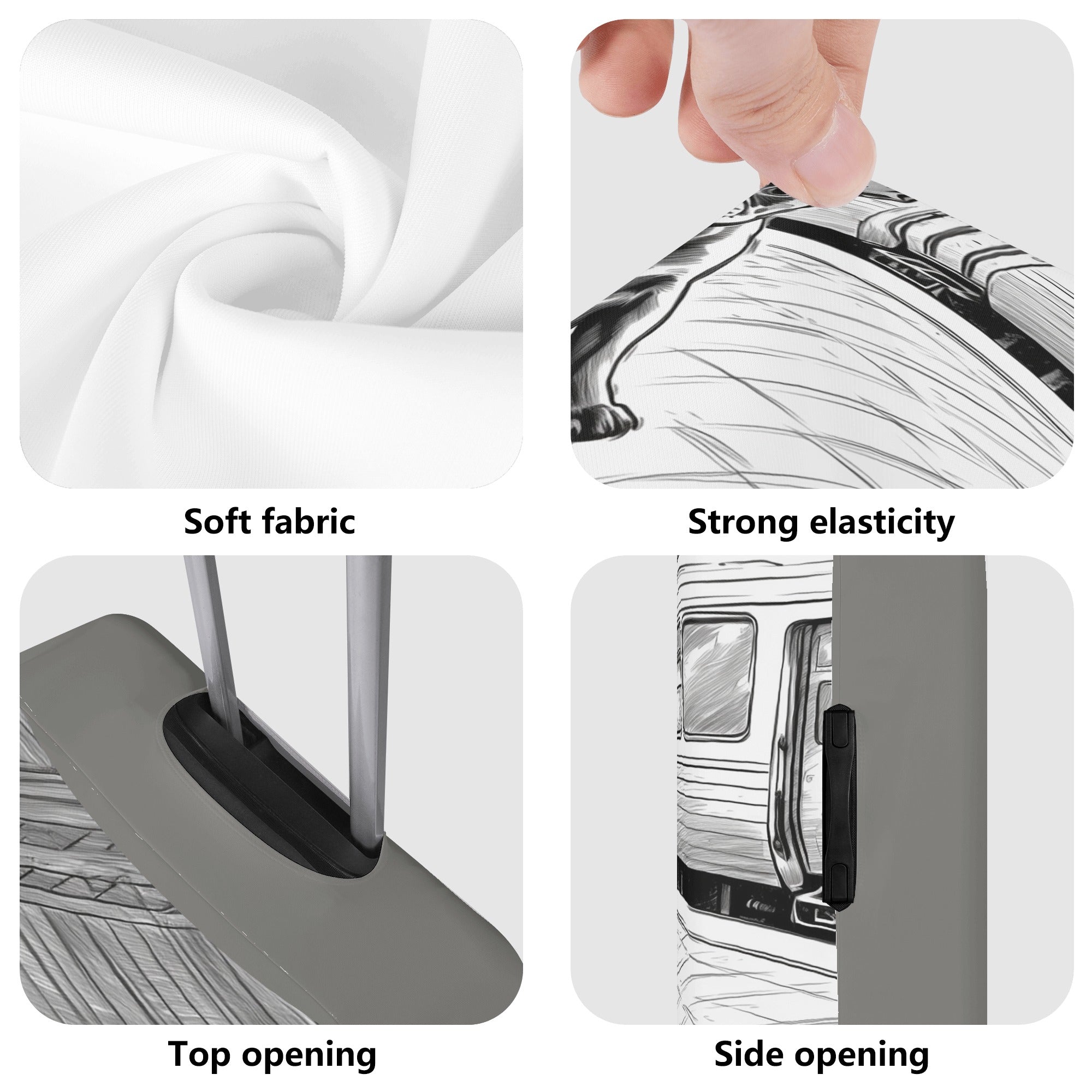 - Zippers on both sides for side handles.