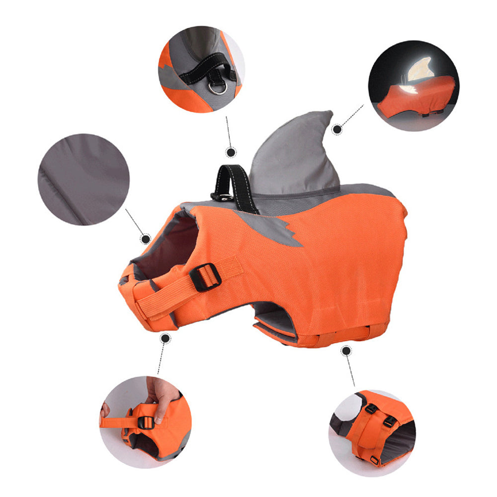 Our Frenchie Shark live vest is brand new and made with High-quality polyester material durable, and the life jacket is a lightweight, super cute design. Adjustable shark shape design dog life vests are lifesavers for the pet in water.