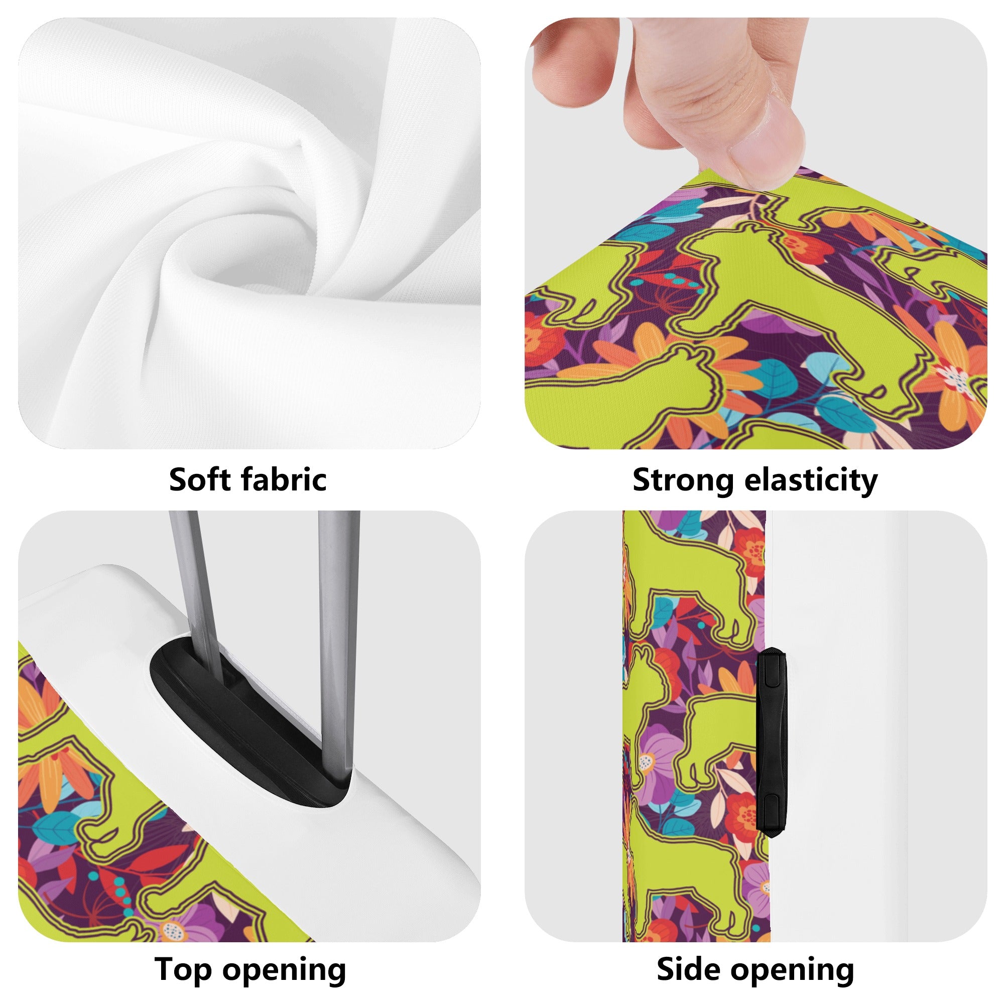 - The case cover comes in four sizes (S-XL) that correspond to different luggage box models. It has a unique opening on top for the telescopic handle and carry handle, and zippers on both sides for the side handles. This makes it easy to load and unload your luggage without removing the case cover.
