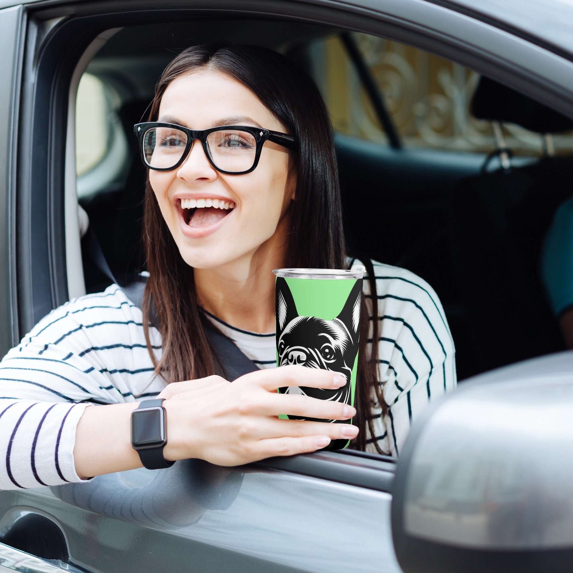 6. French Bulldog Theme: Adorned with charming French Bulldog designs, this tumbler is a must-have for anyone who adores this lovable breed. It's a subtle yet delightful way to showcase your affection for Frenchies.