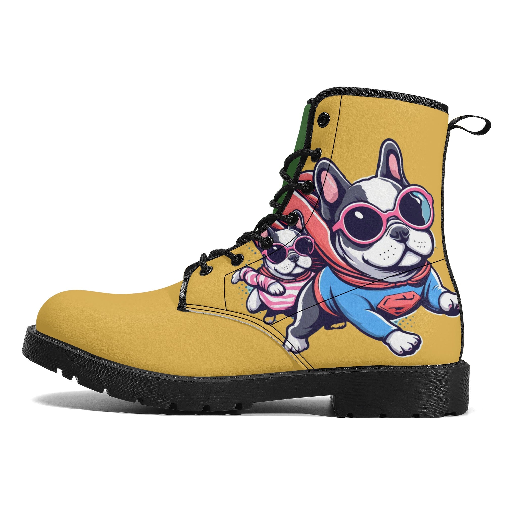 Step out in style with our "French Bulldog Flair" combat boots, a perfect blend of fashion and function for French Bulldog enthusiasts. These boots not only pay homage to your favorite breed but also offer durability and comfort for everyday wear.